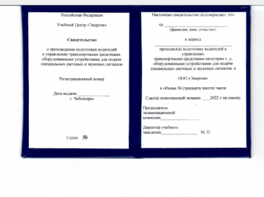 Свидетельство прохождения обучения по спецсигналам